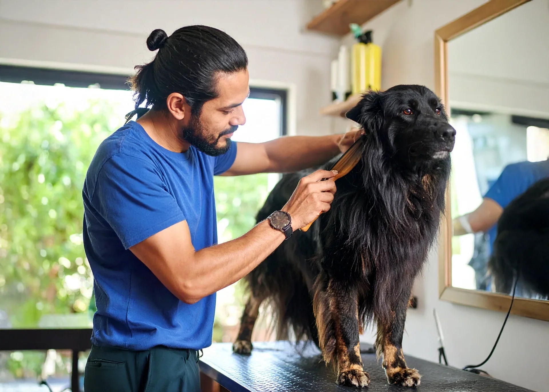 Maak van de verzorging een positieve ervaring. Begin al op jonge leeftijd met wennen aan borstelen en wassen, zodat uw hond dit leert associëren met rust en aandacht. Plan vaste momenten in om te borstelen, afgestemd op het type vacht en de behoeftes van uw hond. Wees geduldig en beloon uw hond tussendoor met een aai of een klein hondensnoepje. Controleer tijdens het borstelen altijd op klitten, vuil en eventuele teken of irritaties. Zorg dat u op een comfortabele plek werkt met voldoende licht en een antislip ondergrond. Bij langharige rassen kan het nodig zijn om regelmatig naar een professionele trimmer te gaan. Zo houdt u de vacht niet alleen schoon en gezond, maar voorkomt u ook huidproblemen en ongemakken.